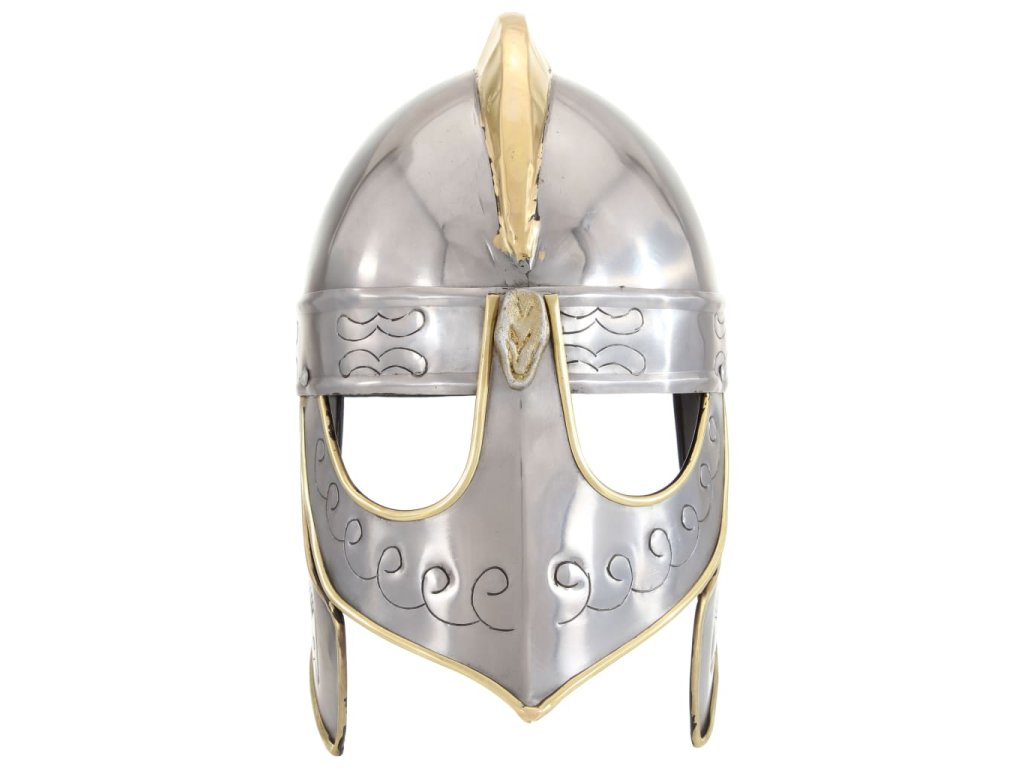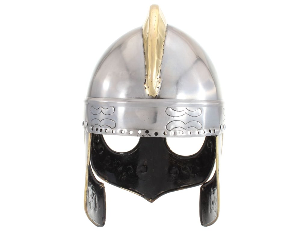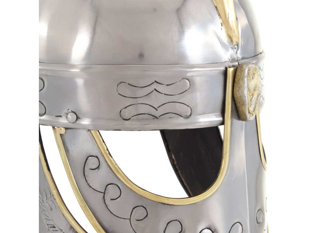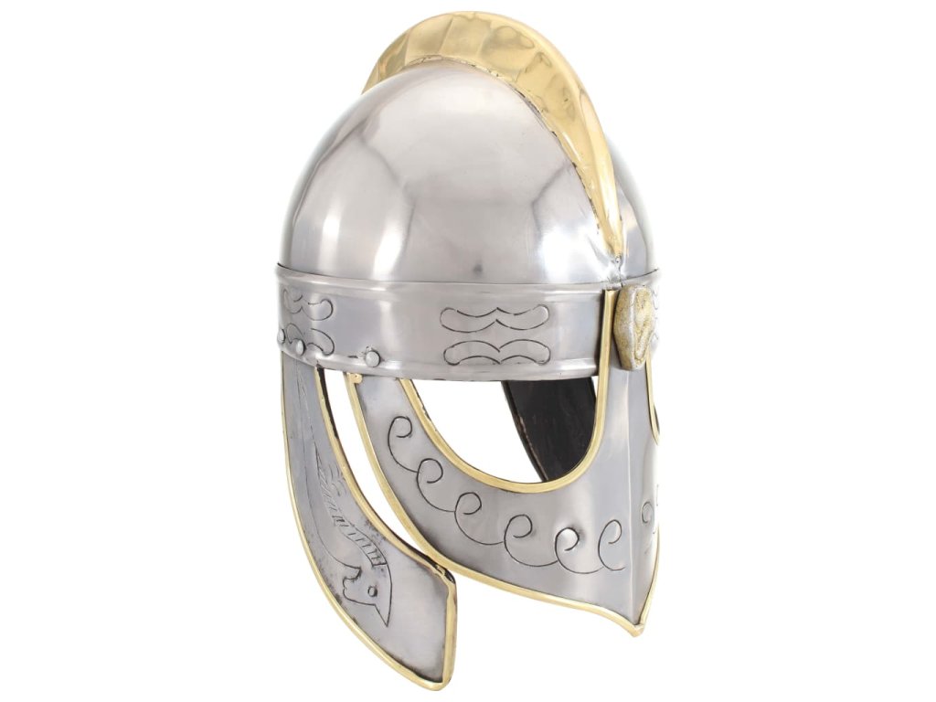 Pancierová prilba je presnou replikou pôvodnej anglosaskej prilby. Bola vyrobená z ocele s 18 gauge a kombinuje starožitný štýl a odolný materiál. Vzniká tak pútavá prilba, ktorá dokonale ladí s vašim rytierskym outfitom. Okrem toho sa jedná aj o pútavý výstavný kúsok.