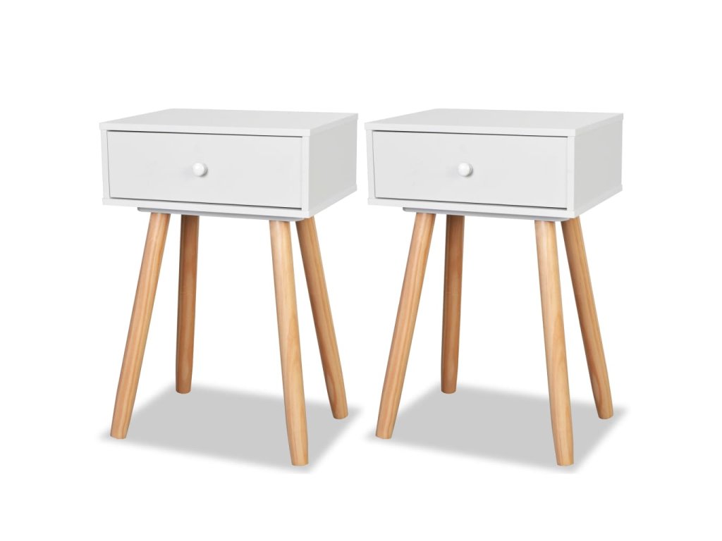 Stolíky boli odborne vyrobené z masívneho borovicového dreva a vysoko kvalitného MDF, vďaka čomu sú veľmi odolné a trvácne. Kompaktné nočné stolíky majú zásuvku, ktorá sa jednoducho vysúva a poskytuje dostatočný priestor pre uskladnenie menších predmetov, ktoré potrebujete mať na dosah ruky. Nočný stolík môže byť použitý aj ako koncový stolík alebo stojan na telefón.