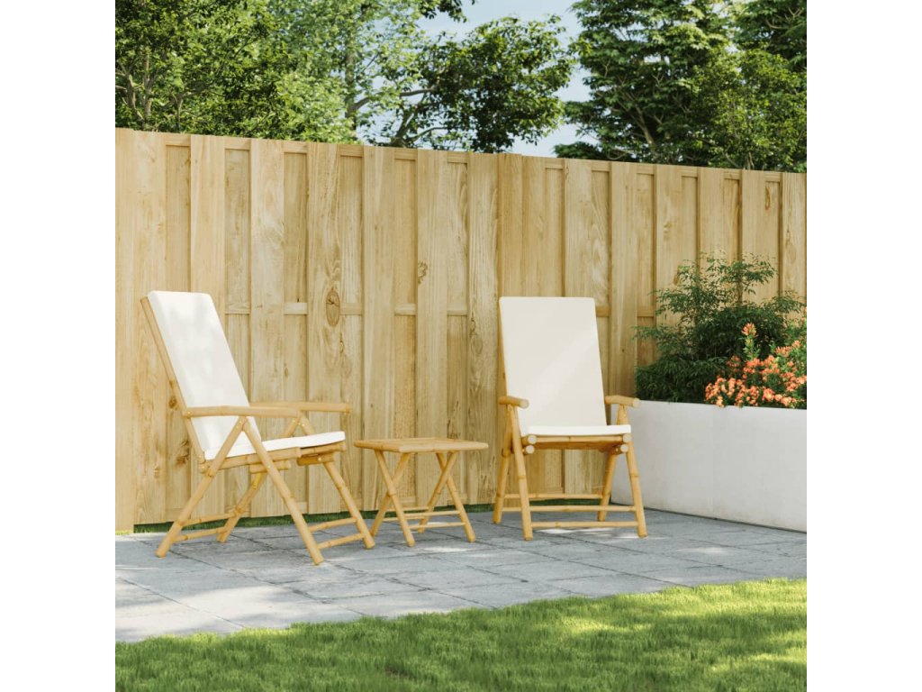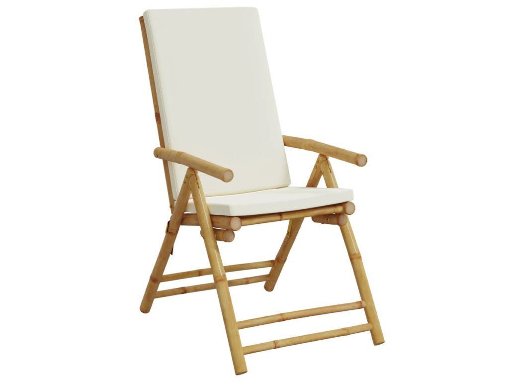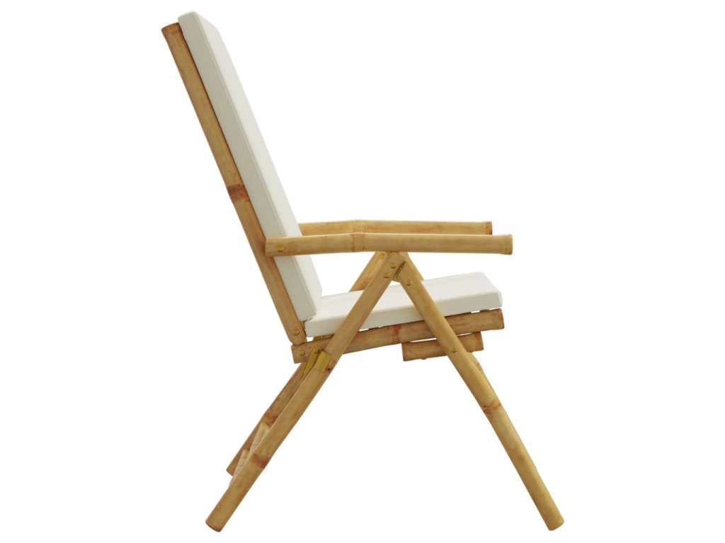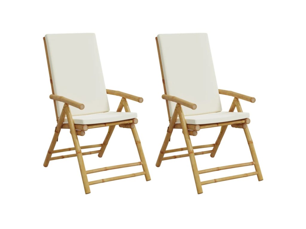 vidaXL Bistro skladacie stoličky 2 ks s krémovobielymi vankúšmi bambus