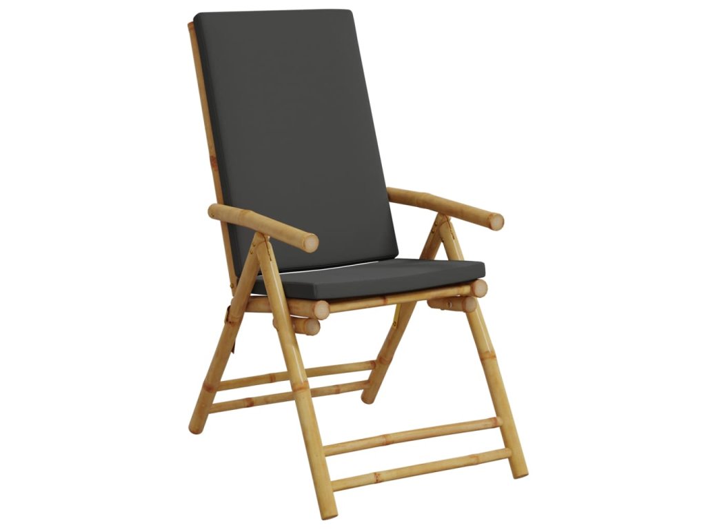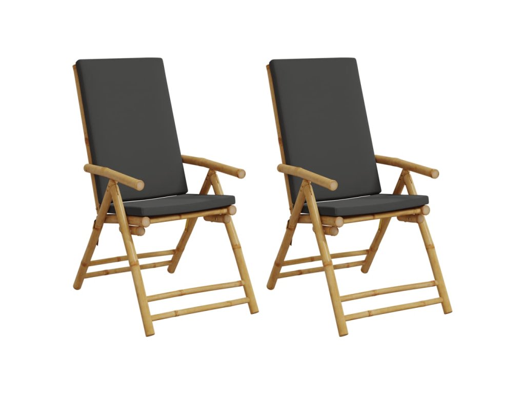 vidaXL Bistro skladacie stoličky 2 ks tmavosivé vankúše bambus