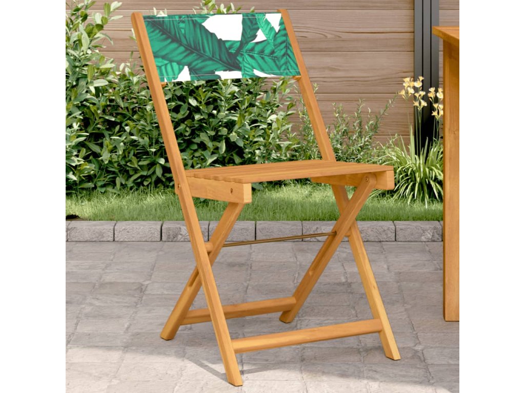vidaXL Bistro stoličky 2 ks vzor listov akáciový masív a látka