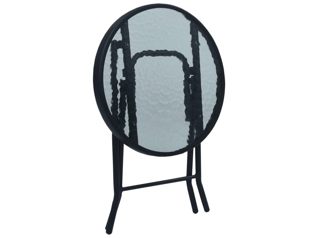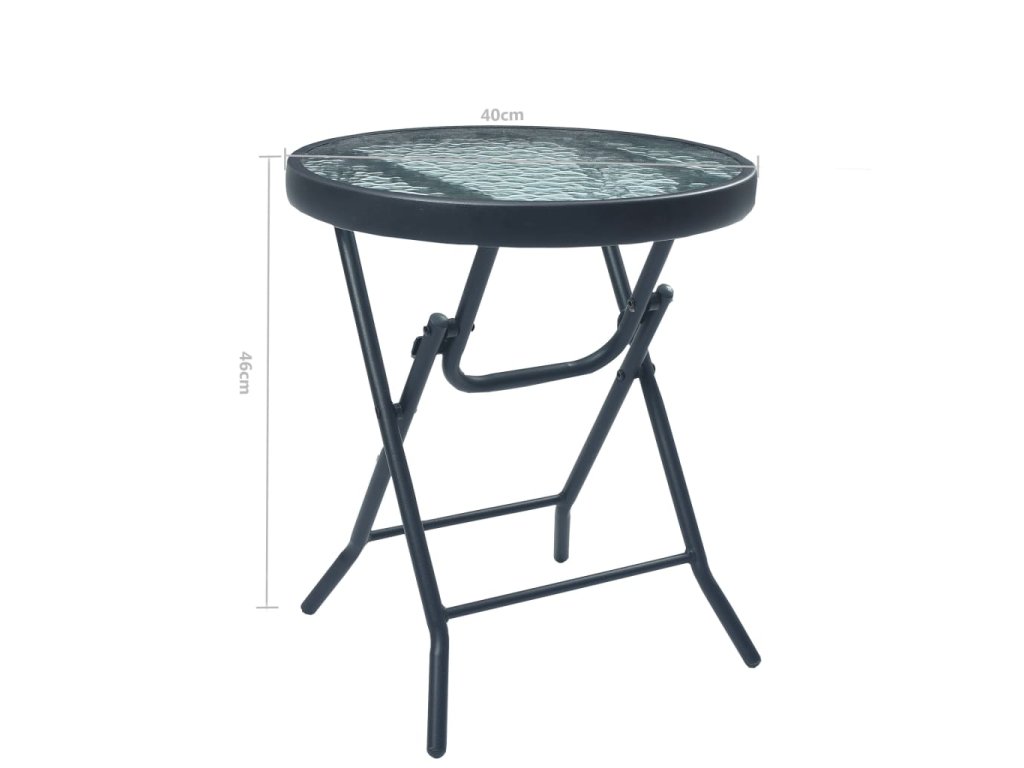 Balkónový stôl je vyrobený z práškovej ocele a je pevný a odolný. Sklenená doska je odolná voči poveternostným vplyvom a ľahko sa čistí, takže sa hodí aj ako záhradný nábytok. Vzor vodnej vlny na vrchnej doske prináša moderné a elegantné kúzlo.