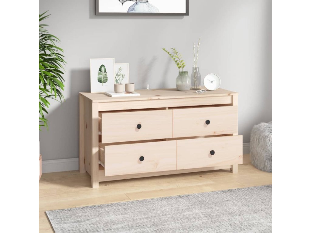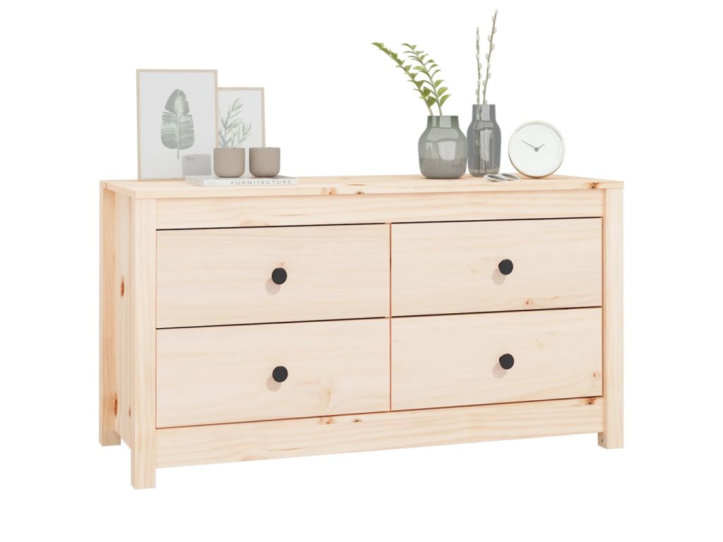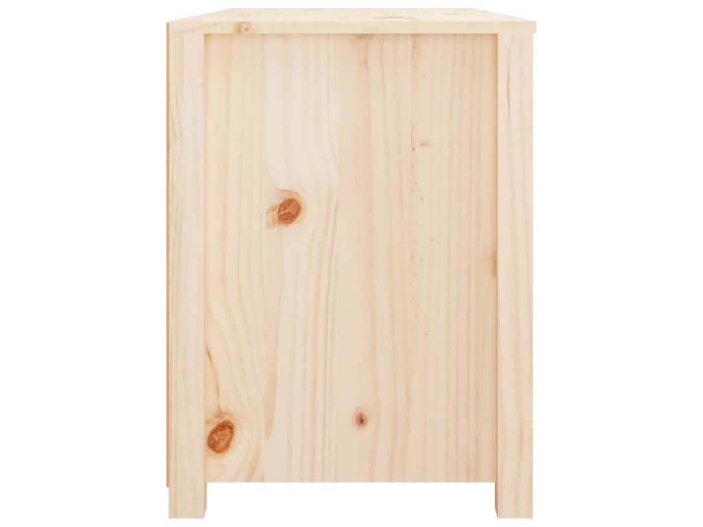 - Masívne borovicové drevo: Táto skrinka je vyrobená z masívneho borovicového dreva. Masívne borovicové drevo je krásny prírodný materiál. Borovicové drevo má rovnú štruktúru a uzly dodávajú materiálu jeho typický rustikálny vzhľad.