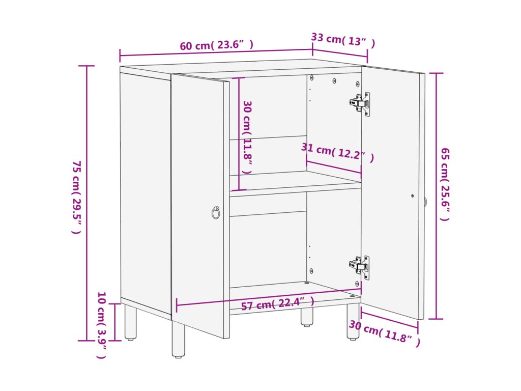 vidaXL Bočná skrinka 60x33x75 cm masívne mangovníkové drevo