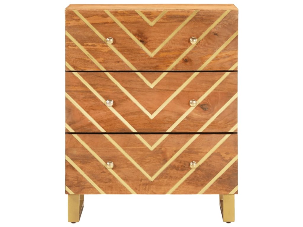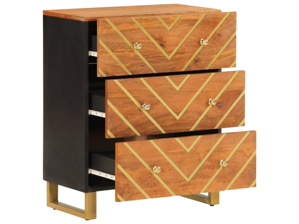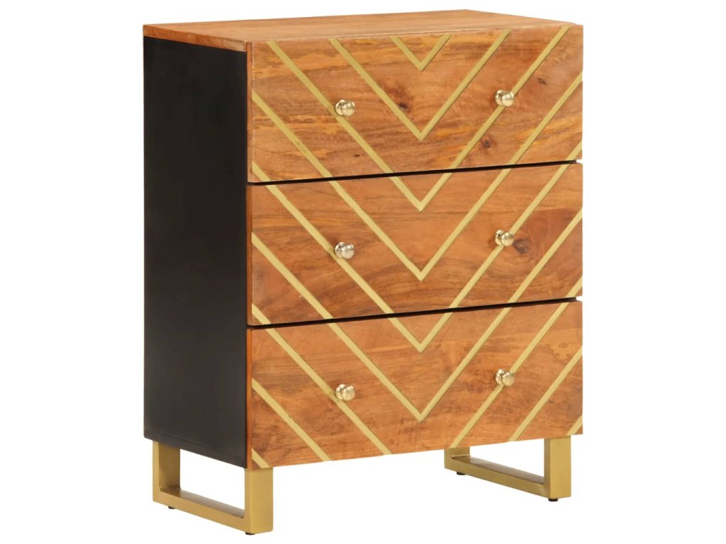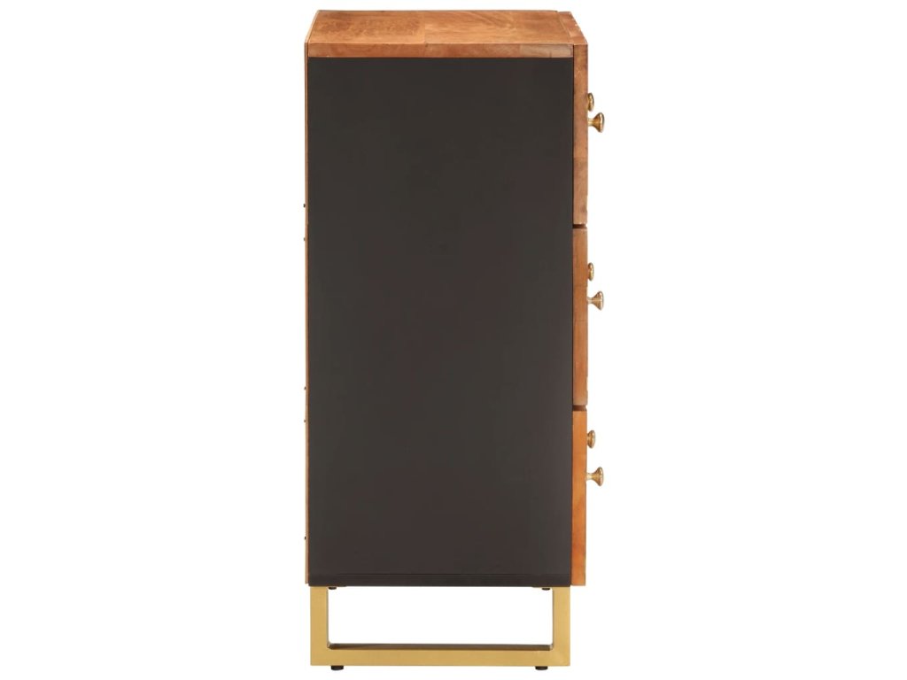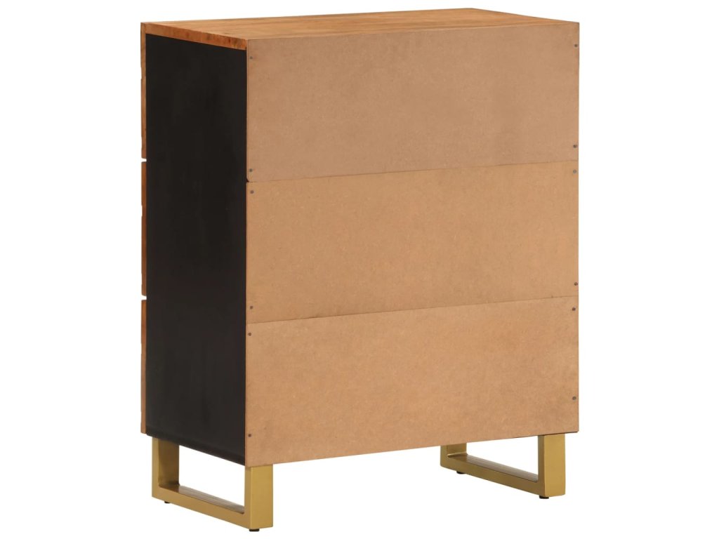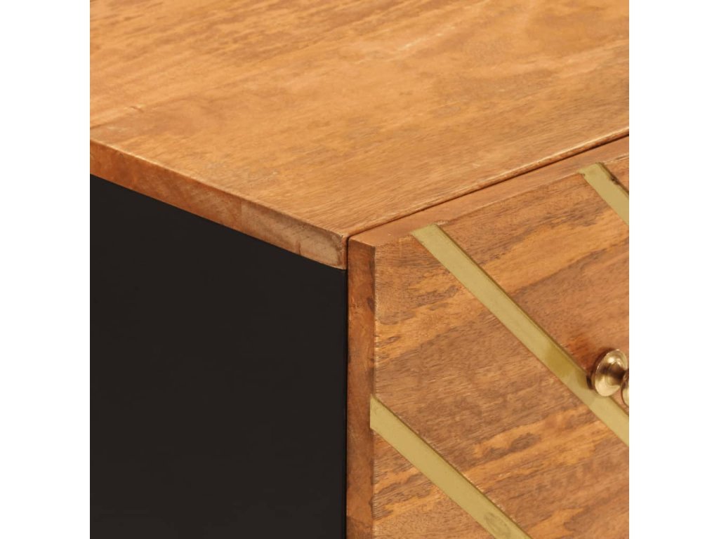 - Materiál: Mangovníkový masív s povrchovou úpravou v akáciovej farbe, MDF, železo