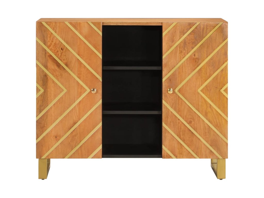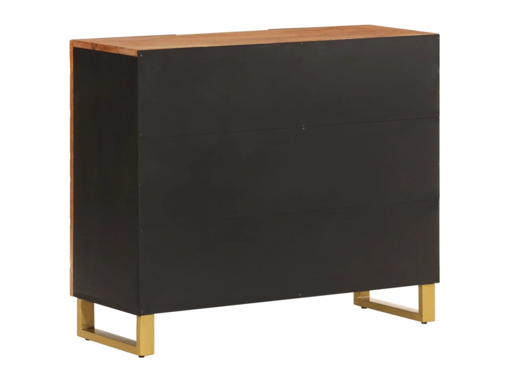 - Materiál: Mangovníkový masív s povrchovou úpravou v akáciovej farbe, MDF, železo