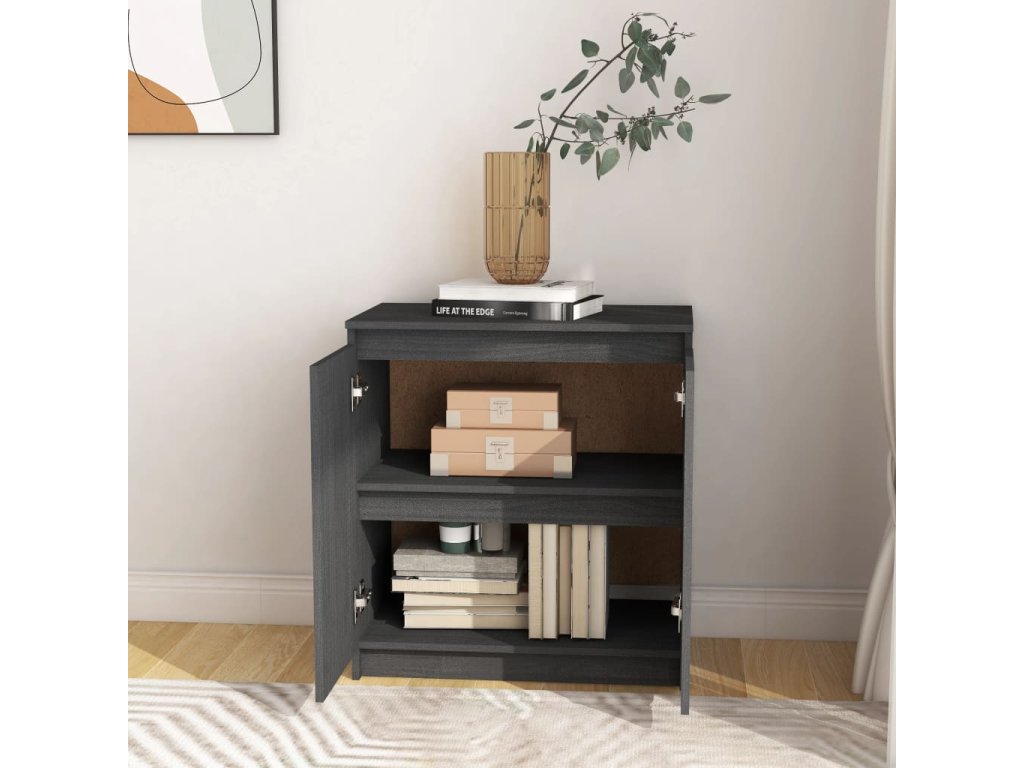 vidaXL Bočná skrinka sivá 60x36x65 cm borovicový masív