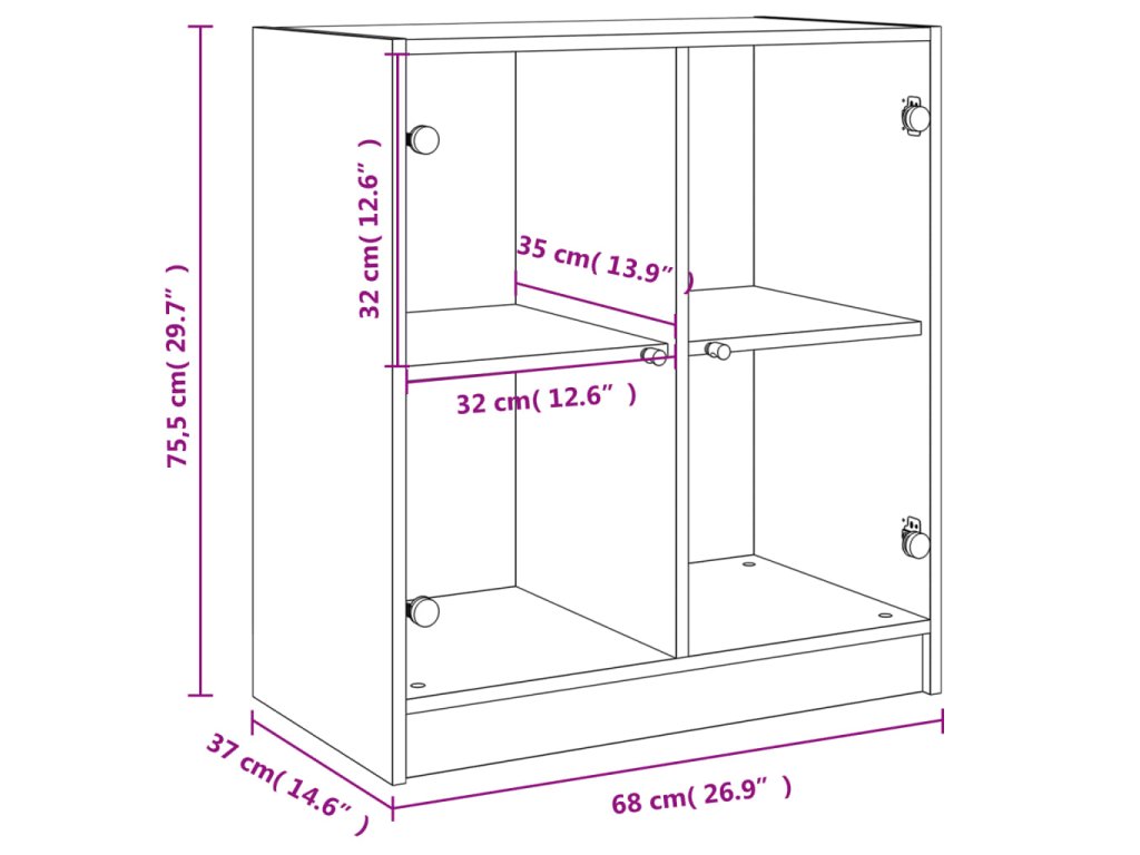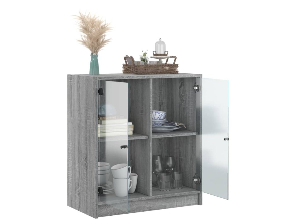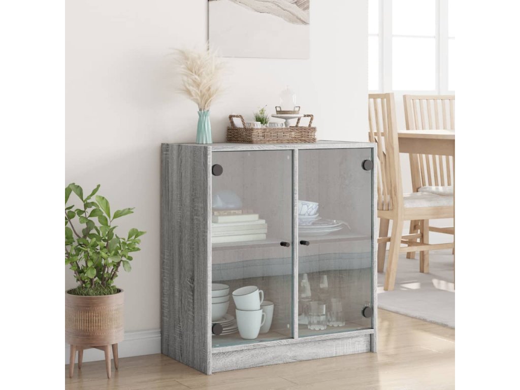 vidaXL Bočná skrinka so sklenenými dvierkami sivá sonoma 68x37x75,5 cm