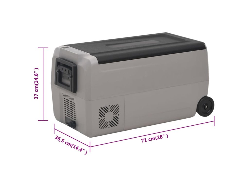- Prenosný dizajn: Chladiaci box do auta možno ľahko premiestniť všade vďaka bočnej rukoväti a kolieskam. Je to ideálne vybavenie na festivaly, túry, pikniky a kempovanie.