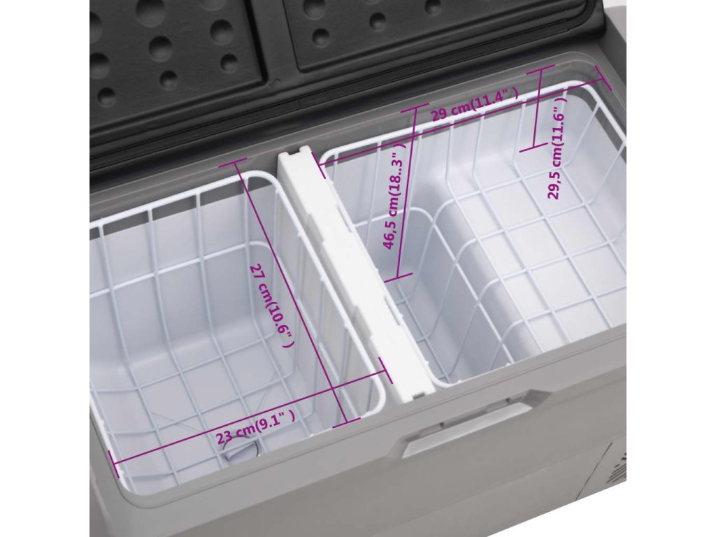 - Veľká kapacita: Chladiaci box má chladiacu zónu, ktorá poskytuje dostatok úložného priestoru na uloženie nápojov, ovocia, zeleniny, zmrzliny a mäsa. Odnímateľný kôš je tiež praktický na úpravu vnútorného priestoru a usporiadanie rôznych potravín.