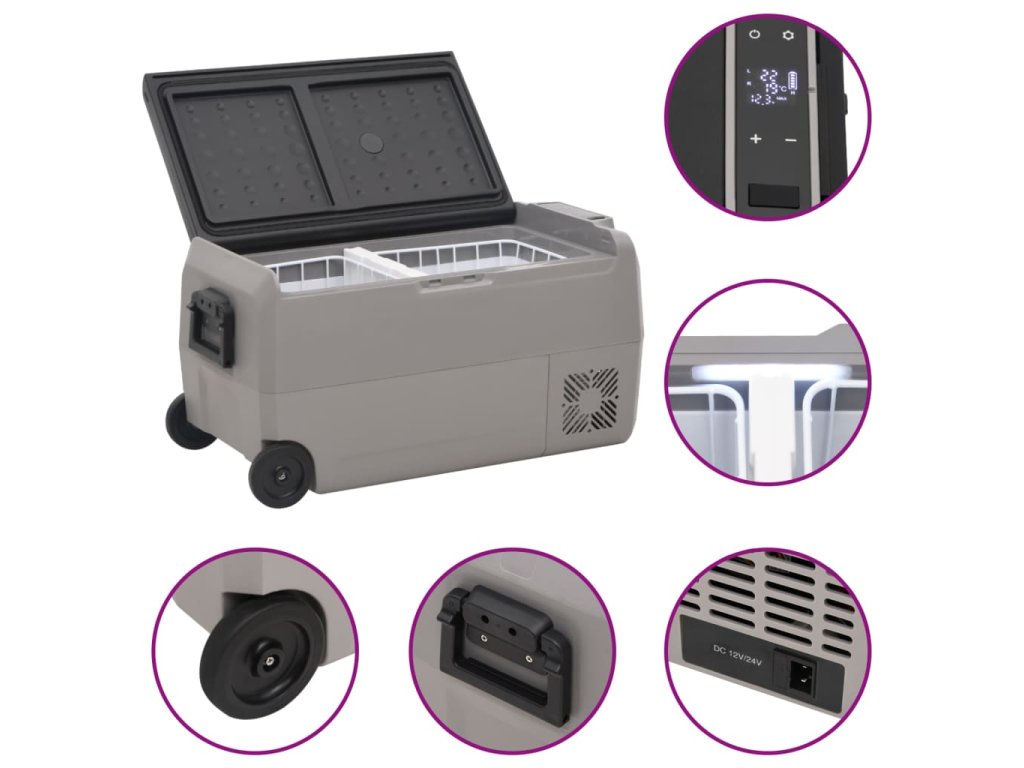 - Prenosný dizajn: Chladiaci box do auta možno ľahko premiestniť všade vďaka bočnej rukoväti a kolieskam. Je to ideálne vybavenie na festivaly, túry, pikniky a kempovanie.