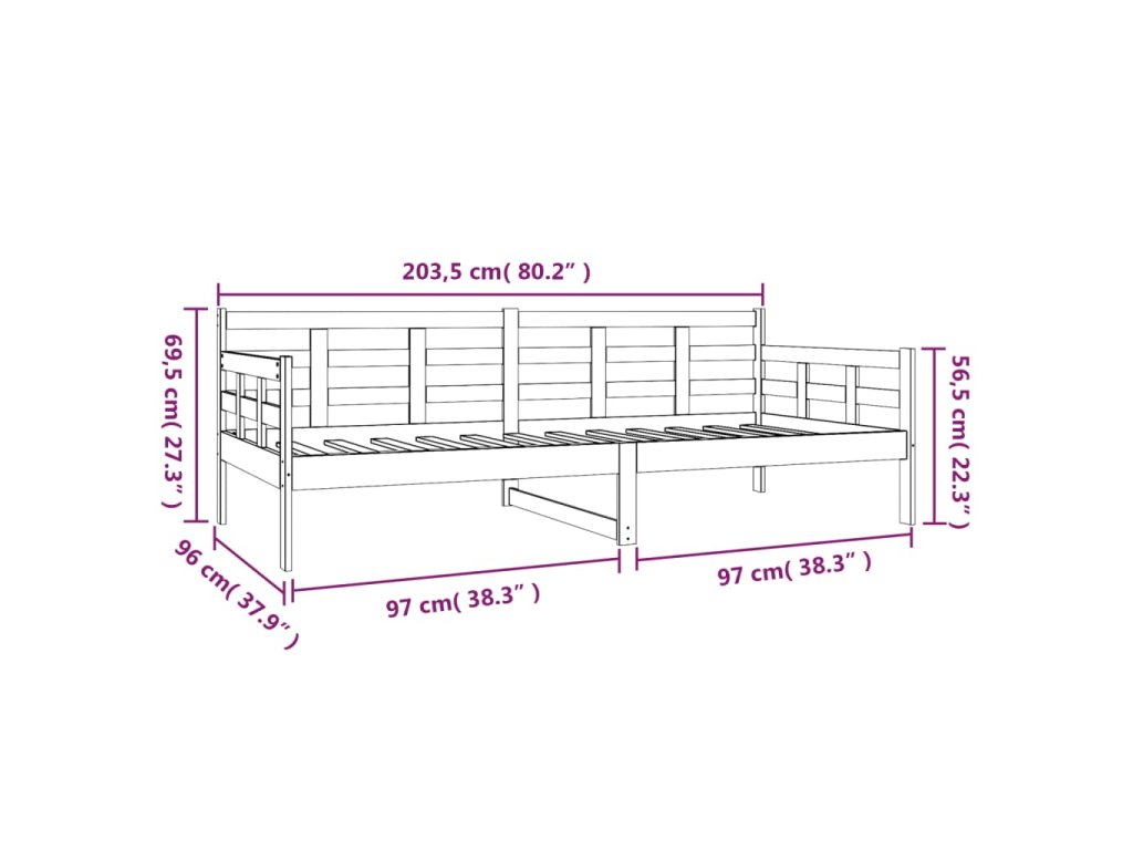 - Multifunkčný dizajn: Túto dennú posteľ z masívneho dreva môžete použiť ako pohovku počas dňa alebo ako posteľ v noci, čím poskytuje rýchle riešenie pre hostí, ktorí prenocujú.