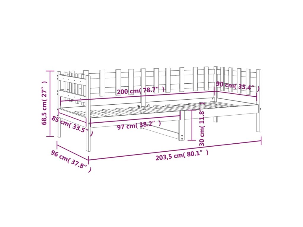 vidaXL Denná posteľ medovohnedá 90x200 cm borovicový masív