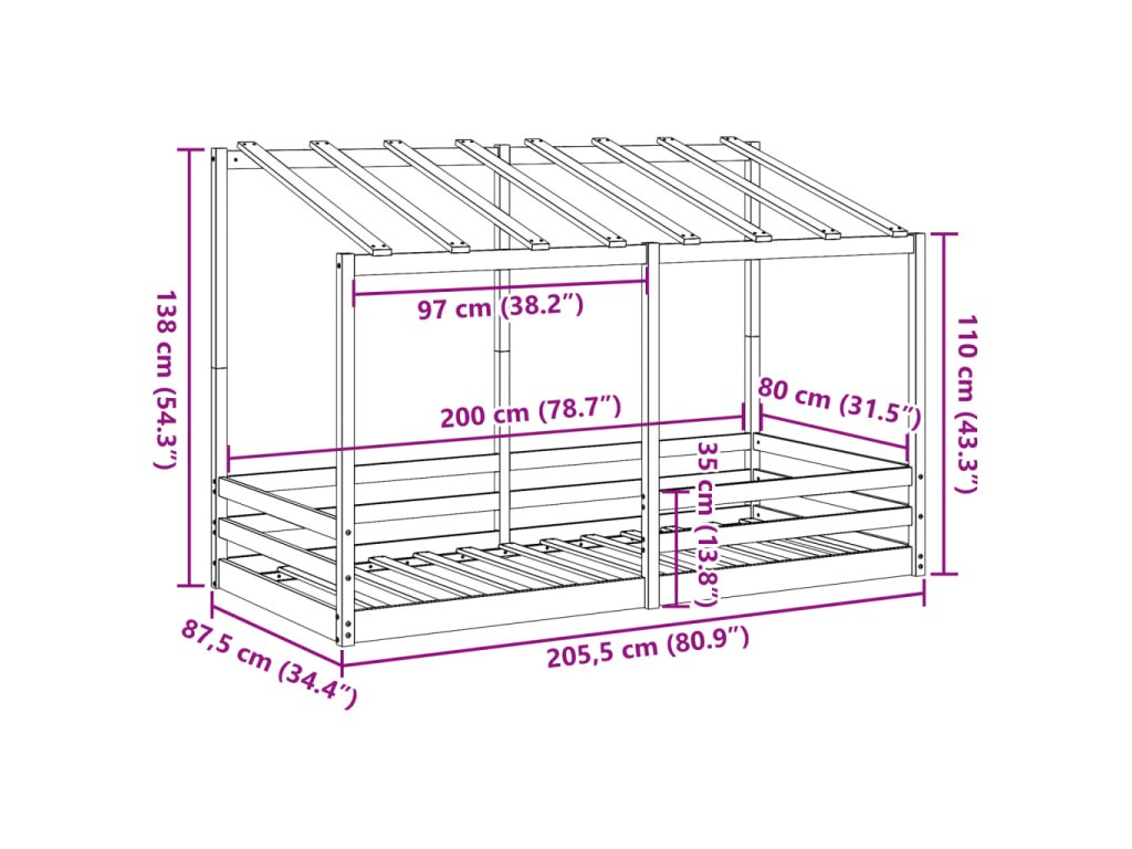 - Vhodné rozmery matraca: 80 x 200 cm (Š x D) (matrac nie je súčasťou balenia)