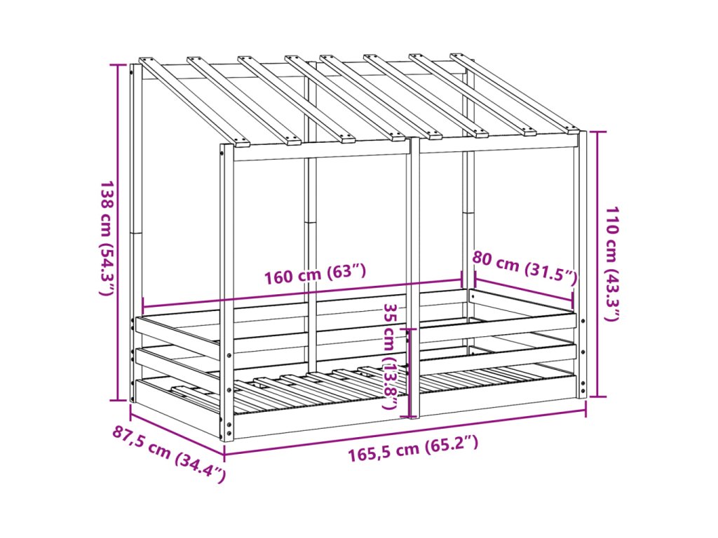 - Vhodné rozmery matraca: 80 x 160 cm (Š x D) (matrac nie je súčasťou balenia)