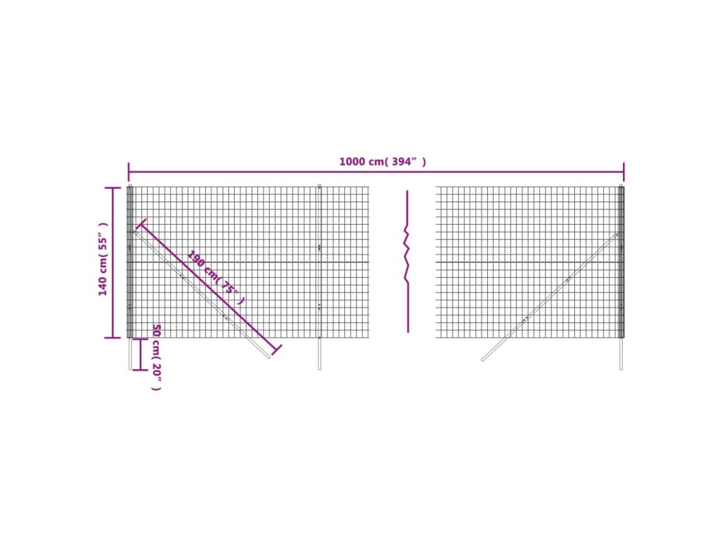 vidaXL Drôtený plot antracitový 1,4x10 m pozinkovaná oceľ