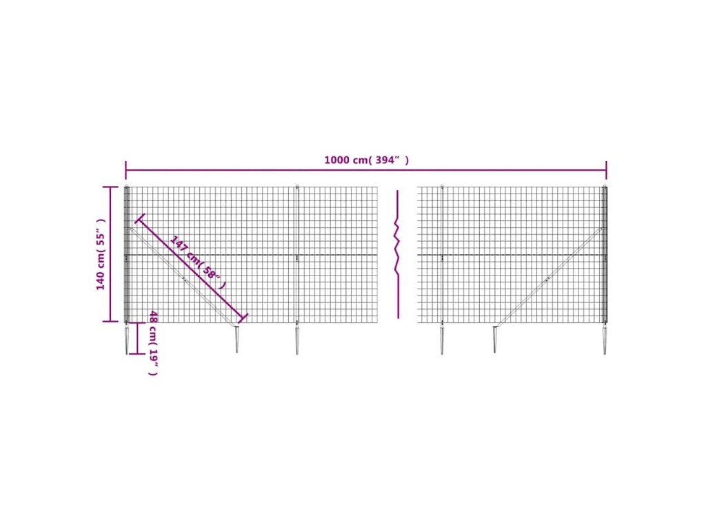 vidaXL Drôtený plot s kotviacimi hrotmi antracitový 1,4x10 m
