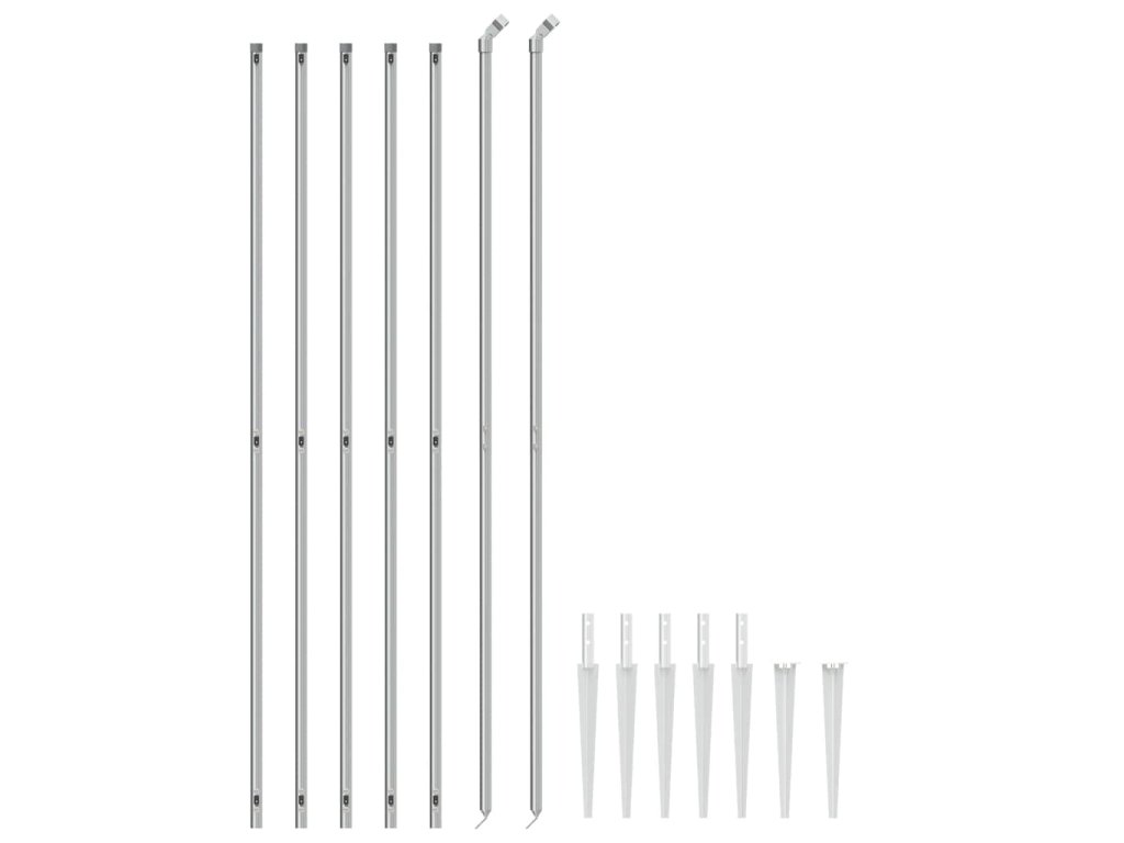 - Stĺpiky a hroty sú súčasťou balenia: Drôtený plot sa dodáva s 5 rovnými stĺpikmi, 2 vzperami, 7 hrotmi na stĺpiky a montážnymi súčiastkami, pomocou ktorých ho pevne osadíte do zeme.