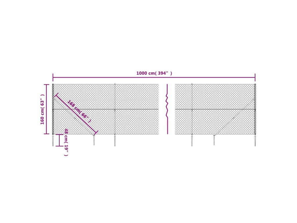 vidaXL Drôtený plot s kotviacimi hrotmi strieborný 1,6x10 m