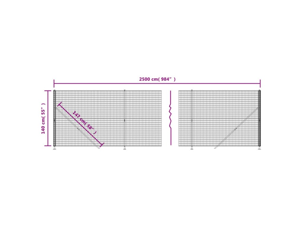 vidaXL Drôtený plot s prírubou antracitový 1,4x25 m