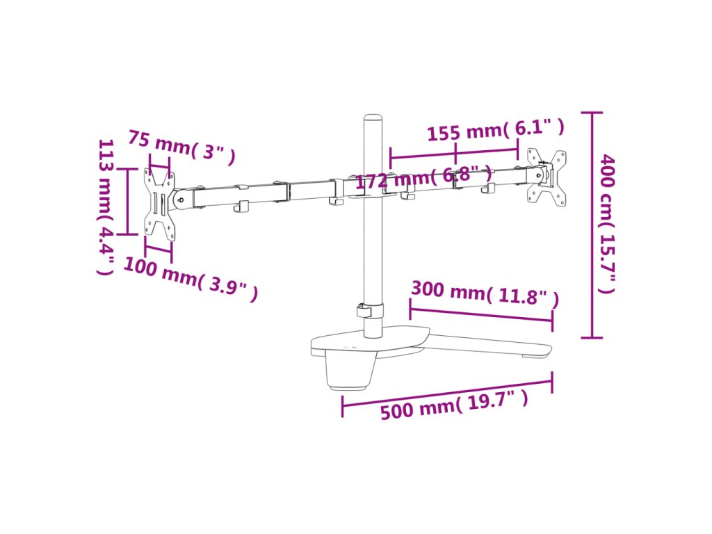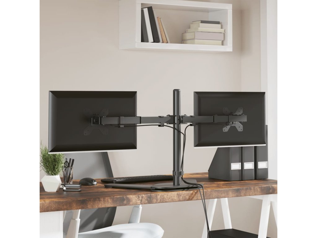 vidaXL Držiak na dva monitory čierny oceľový VESA 75/100 mm