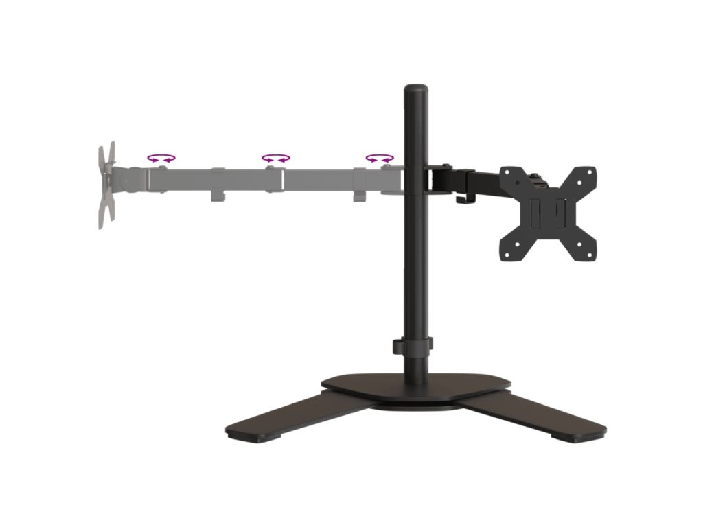 - Stabilný rám: Oceľ je mimoriadne tvrdý a pevný materiál. Ponúka pevnosť a stabilitu. Širšia voľne stojaca základňa navyše zvyšuje stabilitu tohto vesa stojana na monitor.