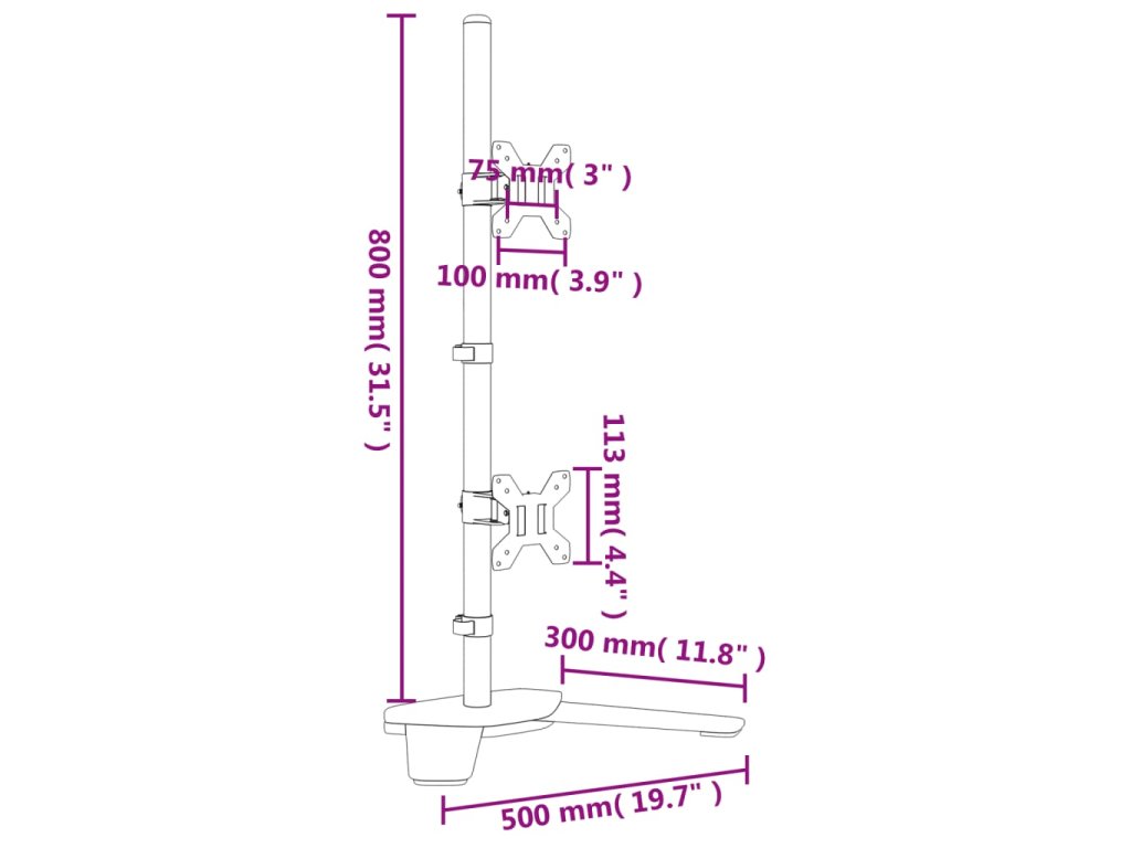 vidaXL Držiak na dva monitory čierny oceľový VESA 75/100 mm