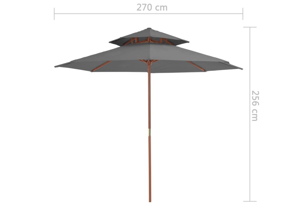 vidaXL Dvojitý vonkajší slnečník s drevenou tyčou 270 cm, antracitový