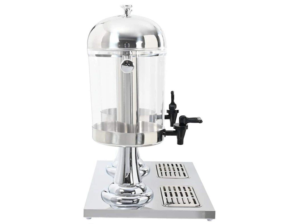 Dvojitý zásobník na nápoje má rámy z nehrdzavejúcej ocele a priehľadné plastové nádoby. Je trvácny a ľahko sa čistí.