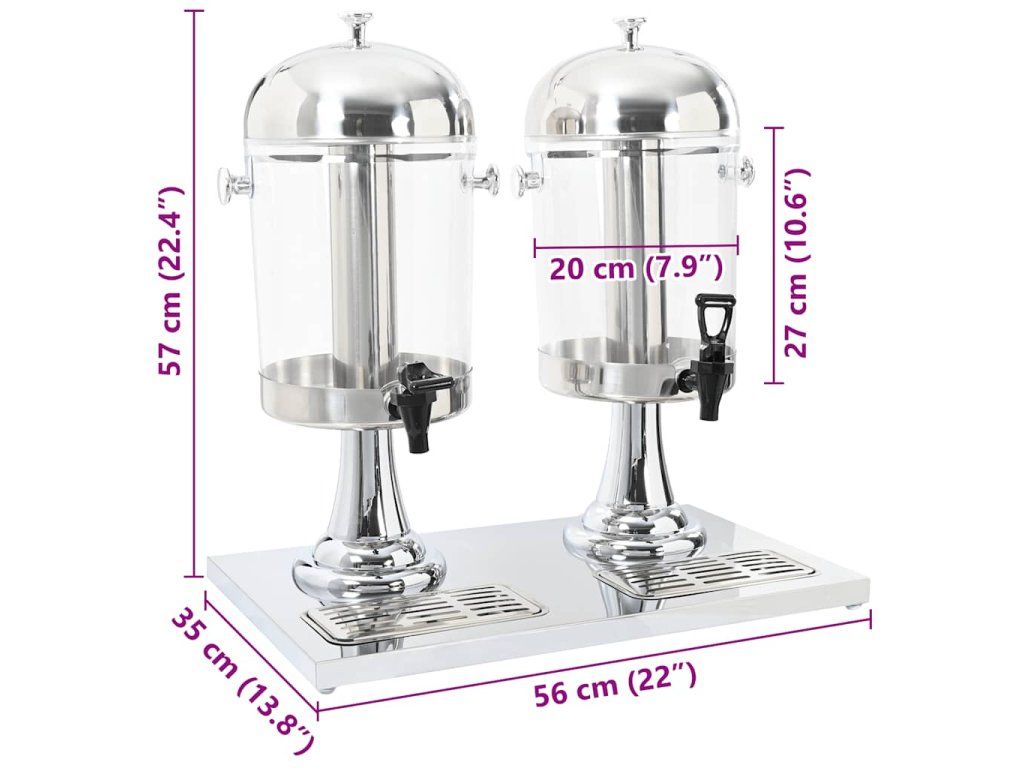 Každý dávkovač na nápoje má kapacitu 8 litrov. Zásobník s čapovacími kohútikmi je vhodné pre poháre s maximálnou výškou 15,5 cm. Na vychladenie nápojov je možné dať do valcov v strede ľad. Odkvapkávacie misky nazhromaždia rozliate nápoje. Pri čistení sa dá miska ľahko vybrať a vyprázdniť.