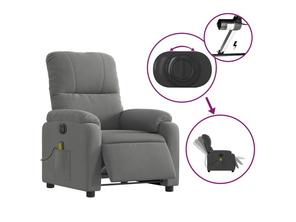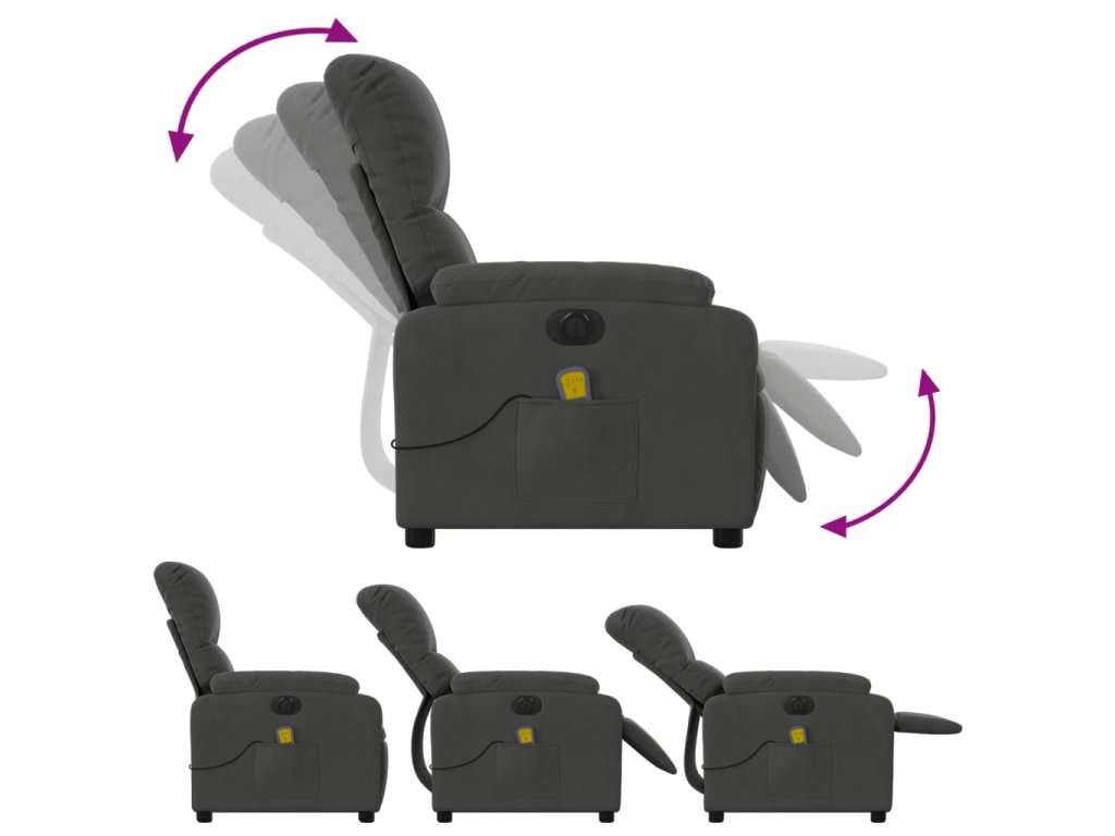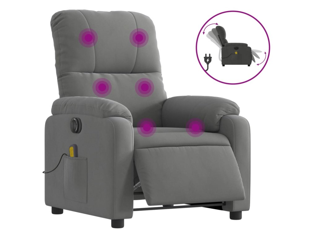 vidaXL Elektrické masážne skláp. kreslo tmavosivé mikrovláknová látka