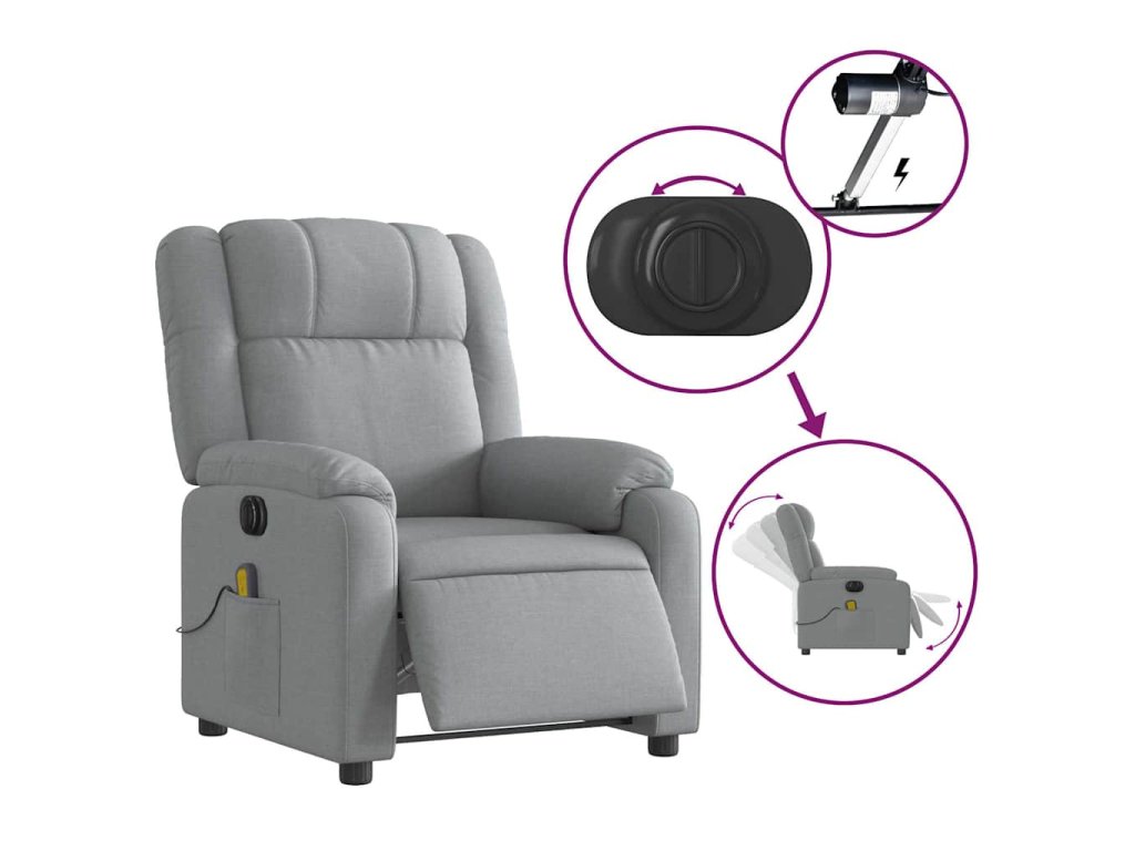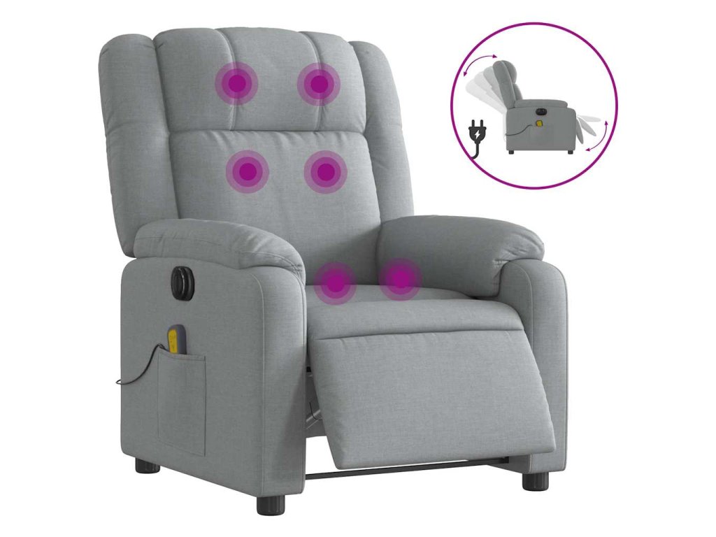 vidaXL Elektrické masážne sklápacie kreslo bledosivé látkové