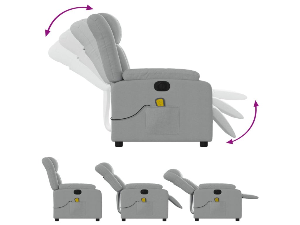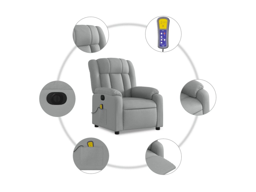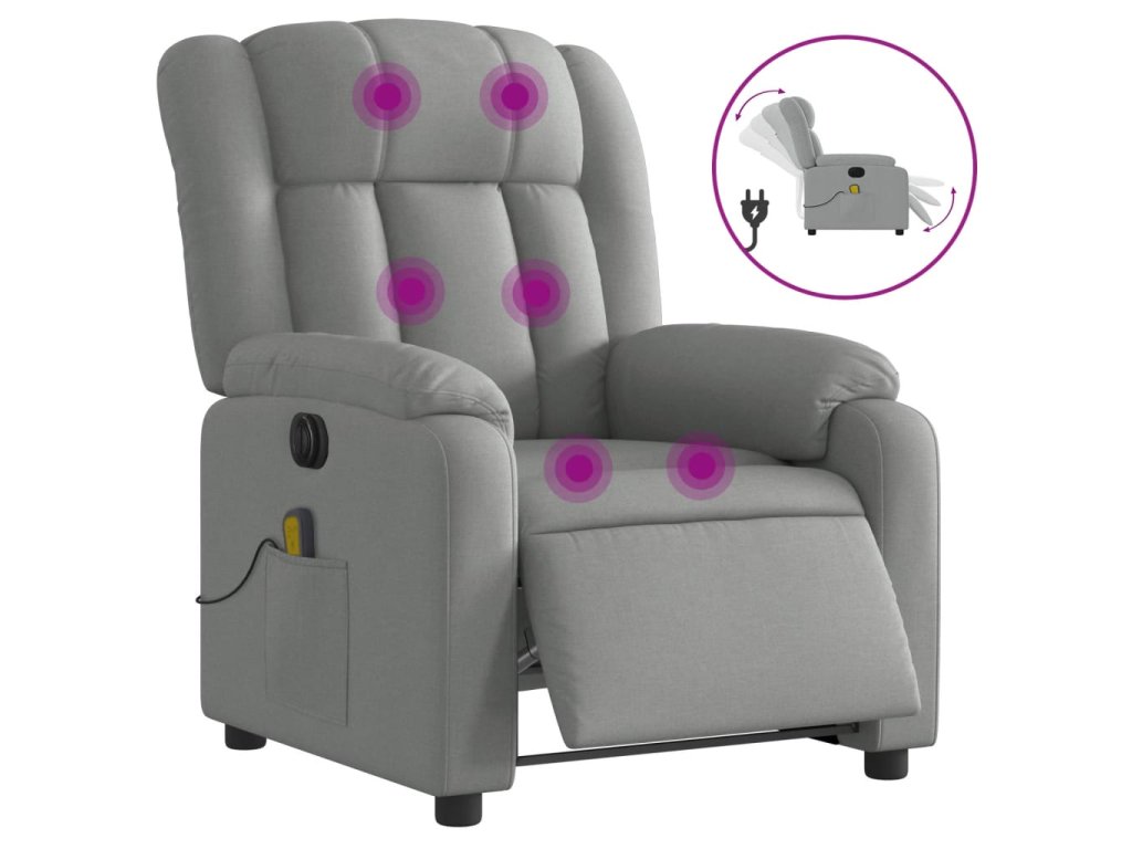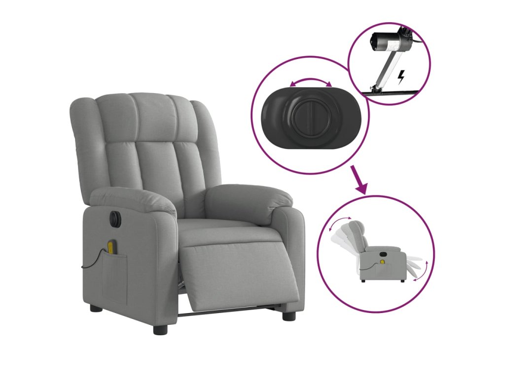 vidaXL Elektrické masážne sklápacie kreslo bledosivé látkové