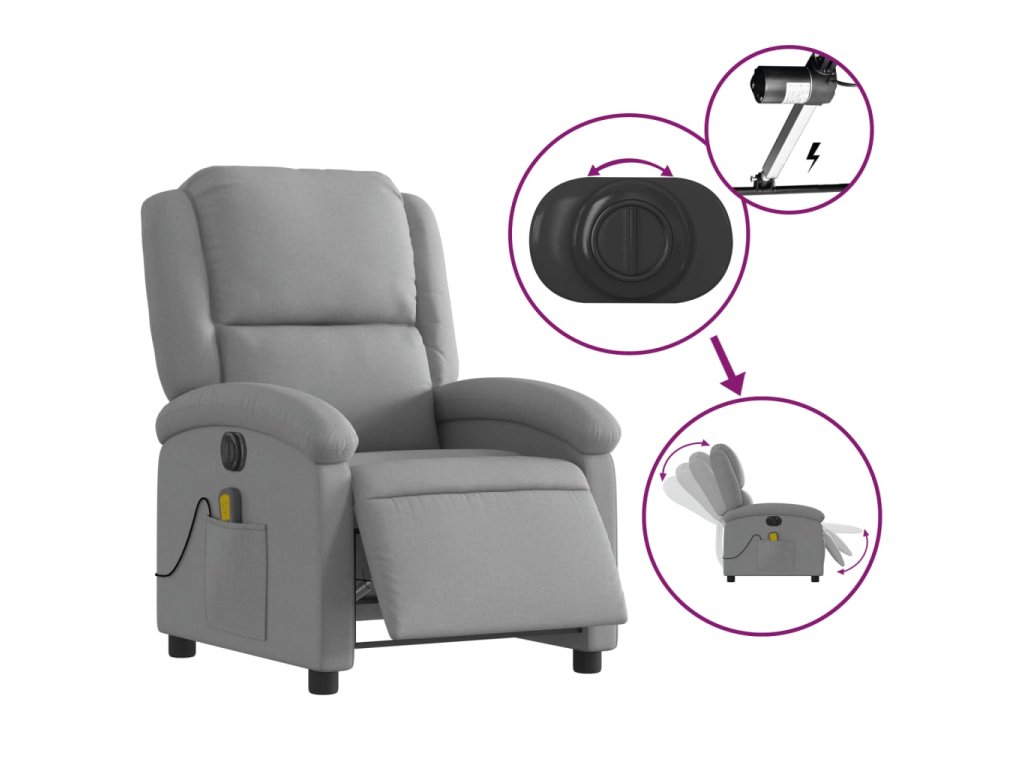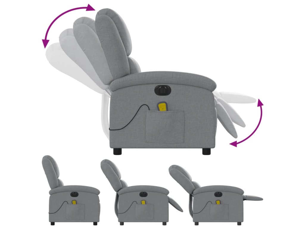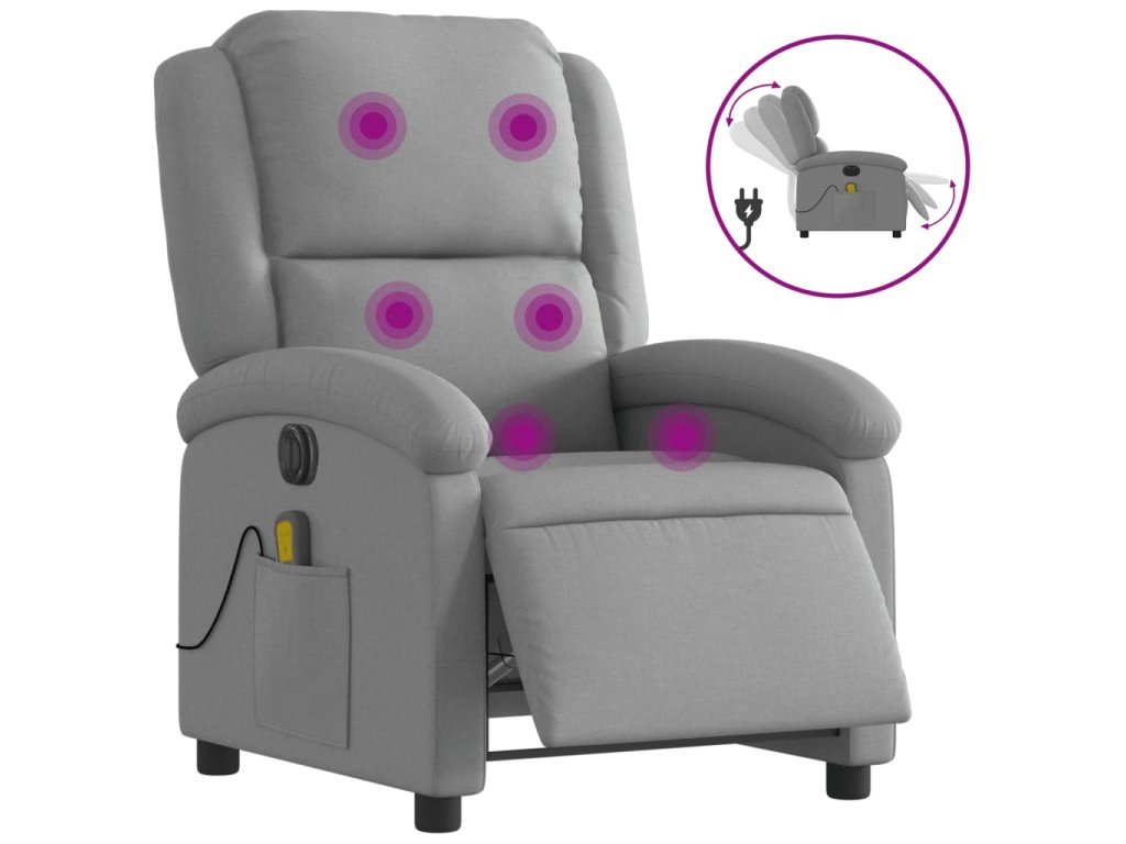 vidaXL Elektrické masážne sklápacie kreslo bledosivé látkové