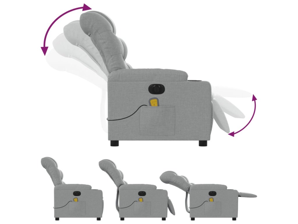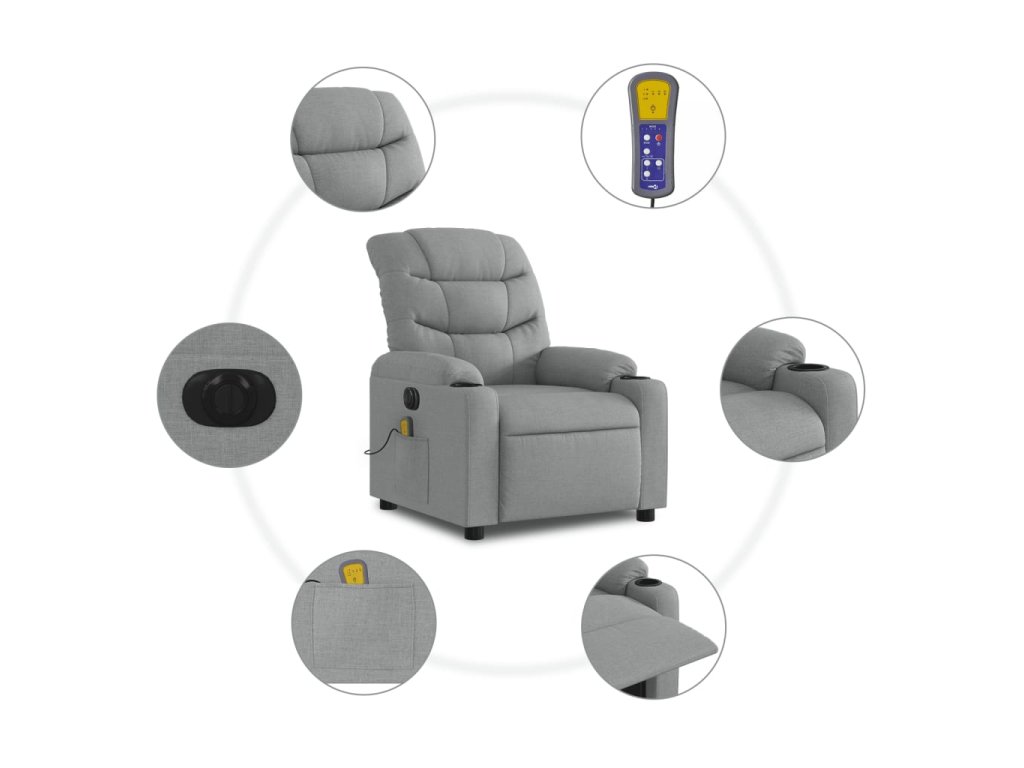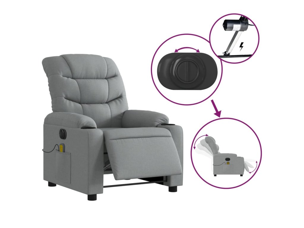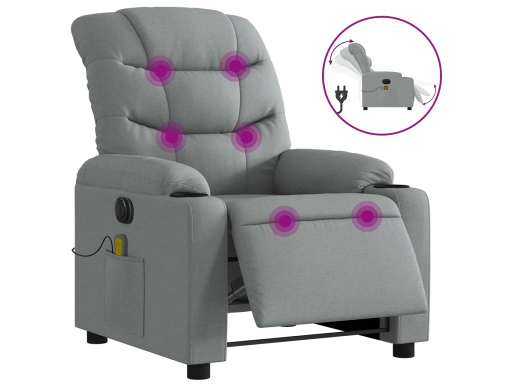 vidaXL Elektrické masážne sklápacie kreslo bledosivé látkové