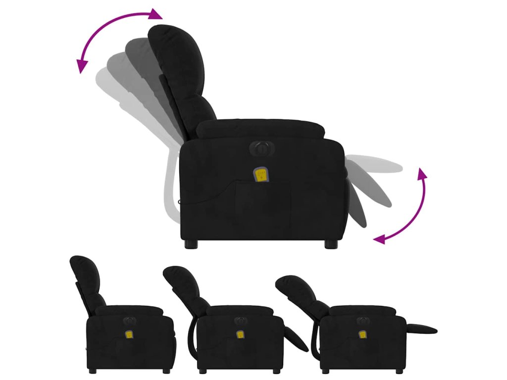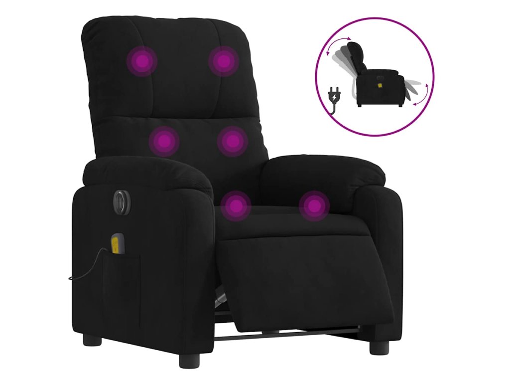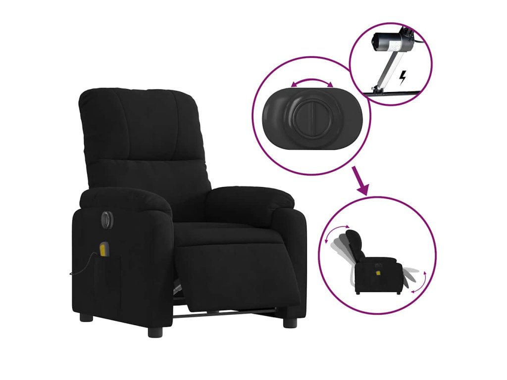 vidaXL Elektrické masážne sklápacie kreslo čierne mikrovláknová látka