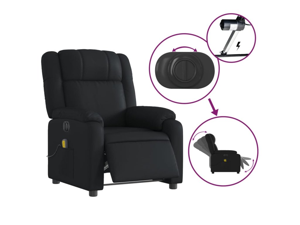 vidaXL Elektrické masážne sklápacie kreslo čierne umelá koža