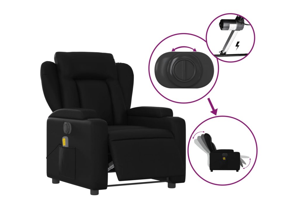 vidaXL Elektrické masážne sklápacie kreslo čierne umelá koža