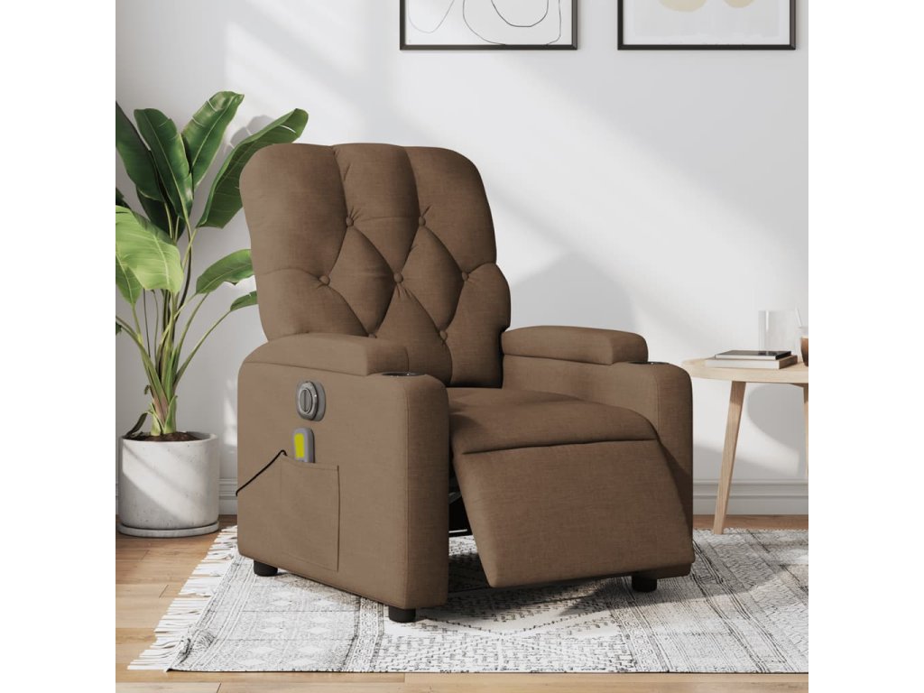 vidaXL Elektrické masážne sklápacie kreslo hnedé látka