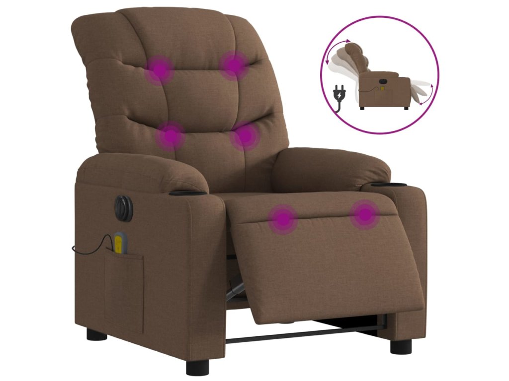 vidaXL Elektrické masážne sklápacie kreslo hnedé látka
