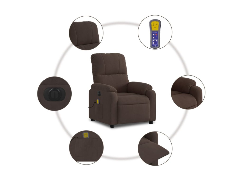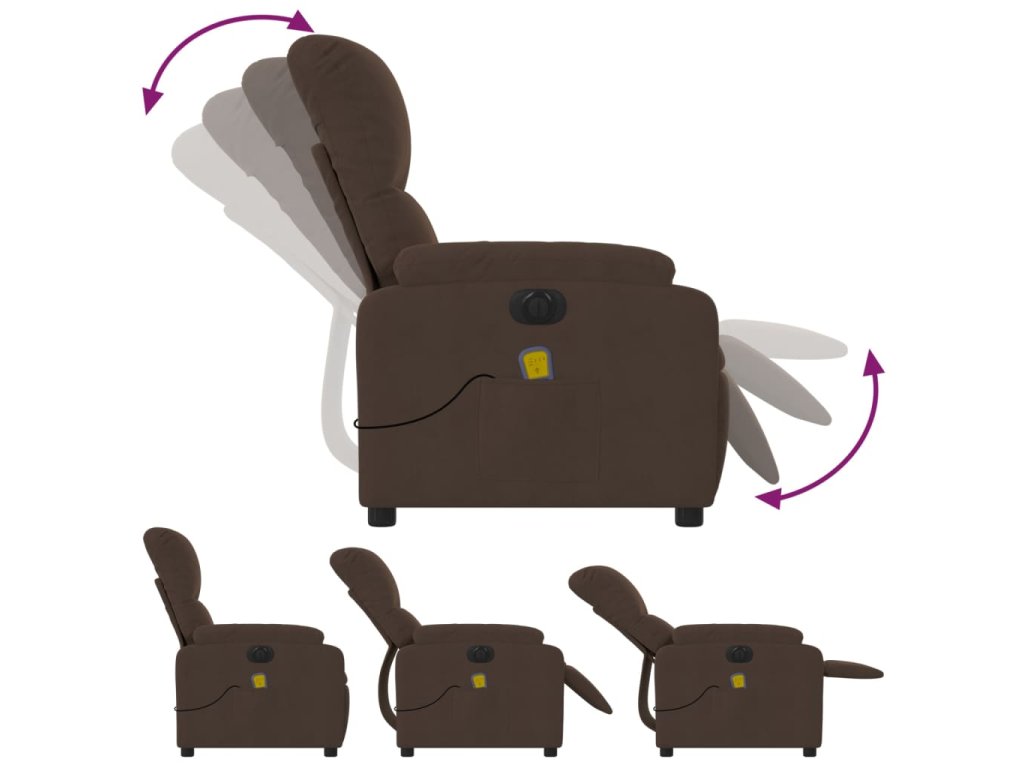 vidaXL Elektrické masážne sklápacie kreslo hnedé mikrovláknová látka