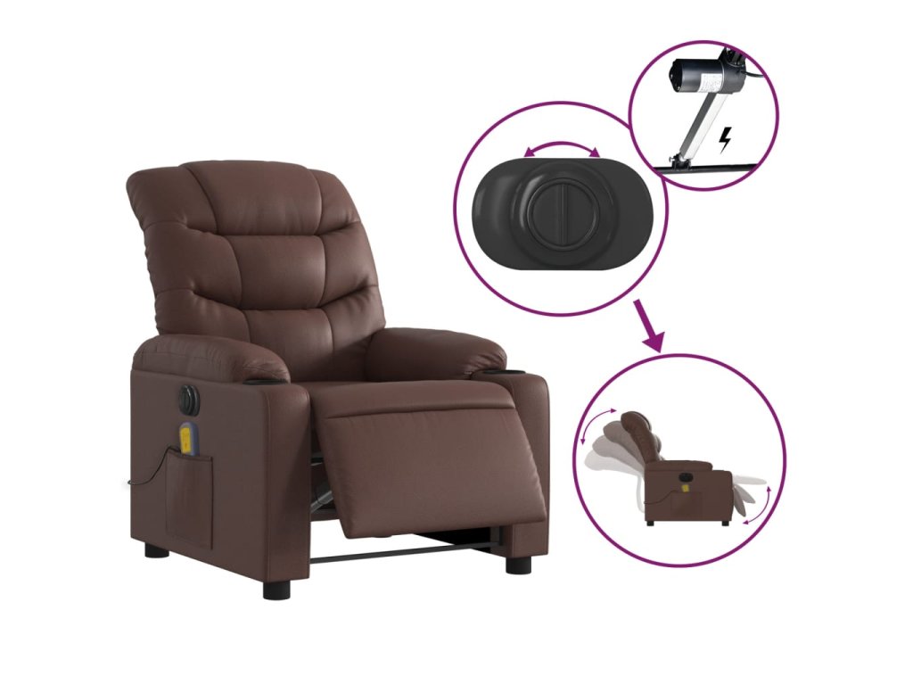 vidaXL Elektrické masážne sklápacie kreslo hnedé umelá koža