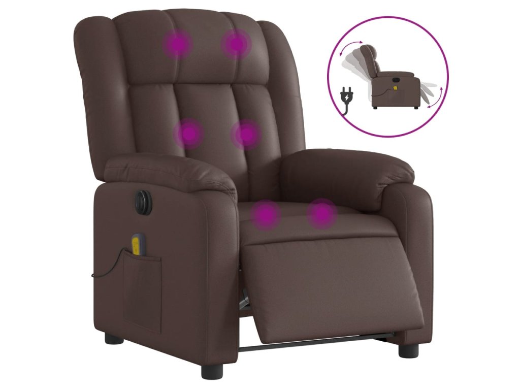 vidaXL Elektrické masážne sklápacie kreslo hnedé umelá koža