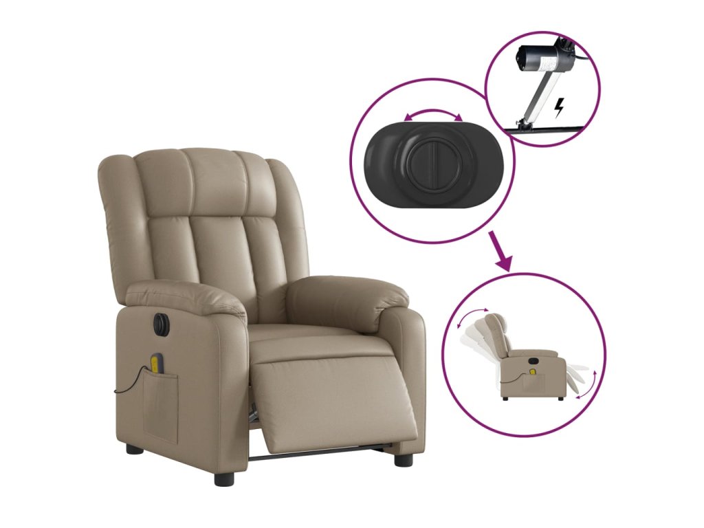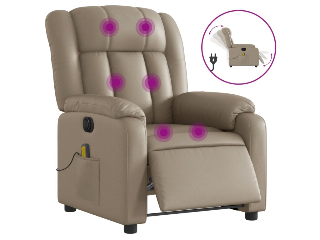 vidaXL Elektrické masážne sklápacie kreslo kapučínové umelá koža