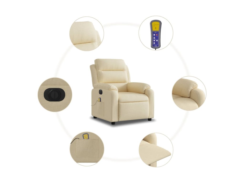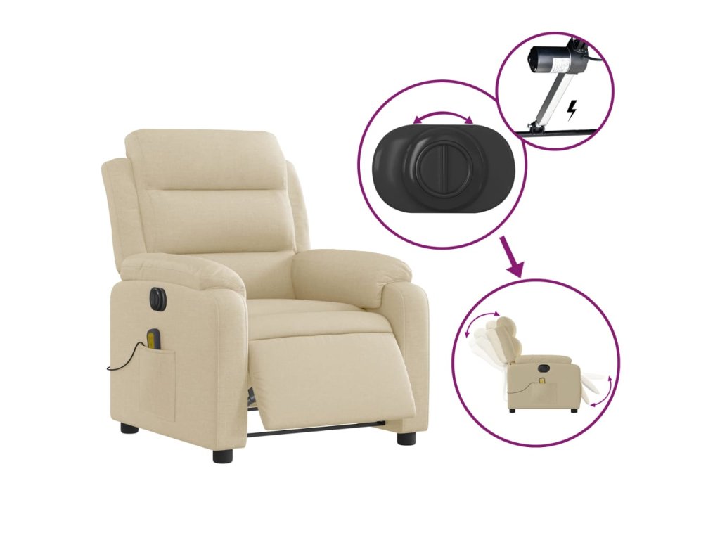 vidaXL Elektrické masážne sklápacie kreslo krémové látka