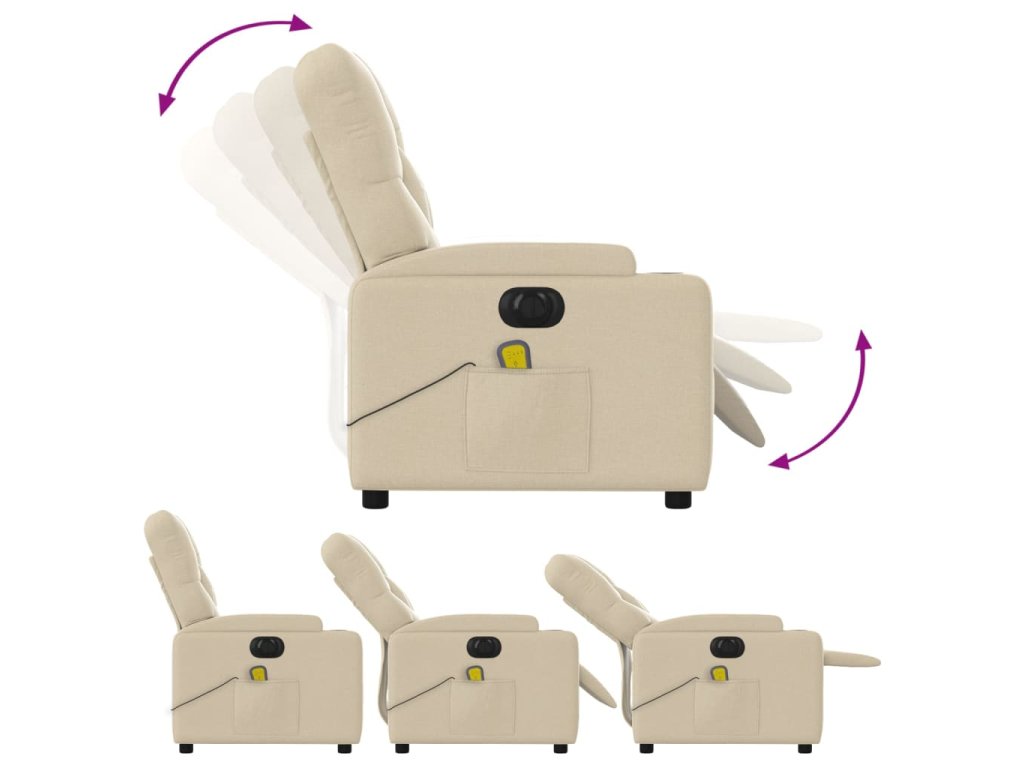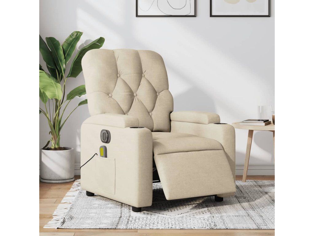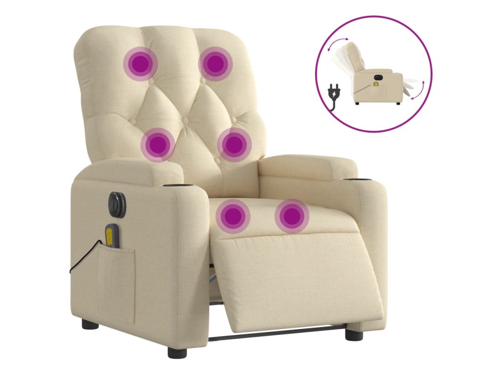 vidaXL Elektrické masážne sklápacie kreslo krémové látka
