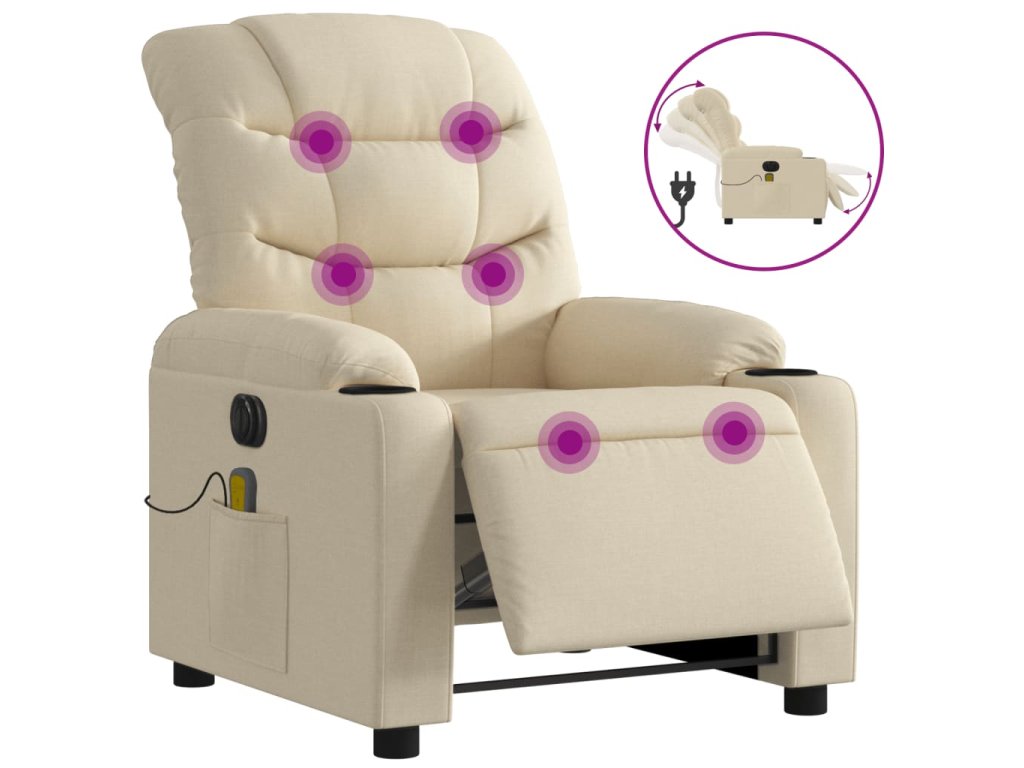 vidaXL Elektrické masážne sklápacie kreslo krémové látka