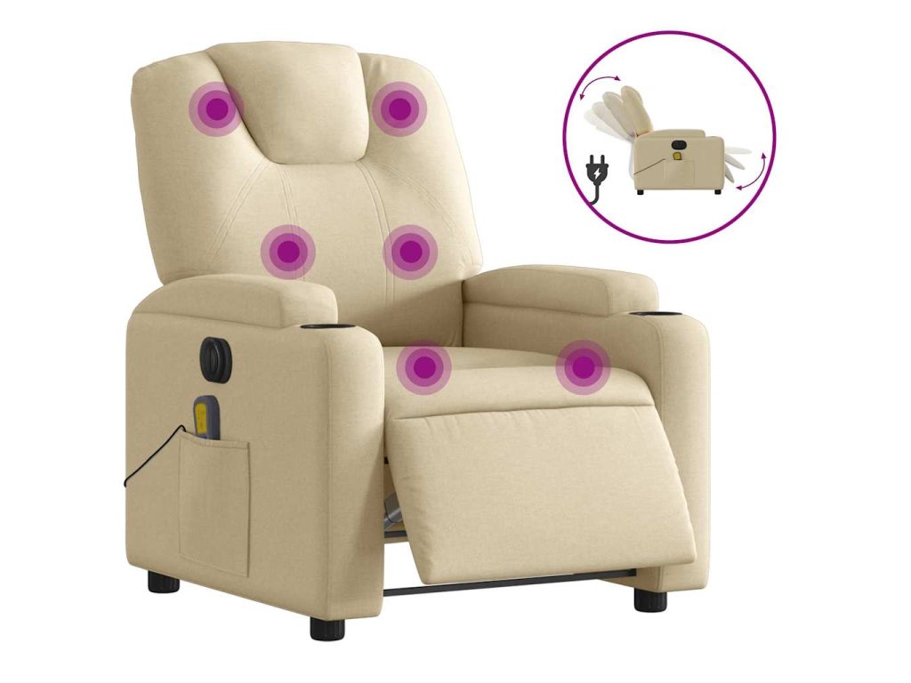 vidaXL Elektrické masážne sklápacie kreslo krémové látka