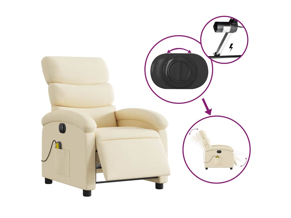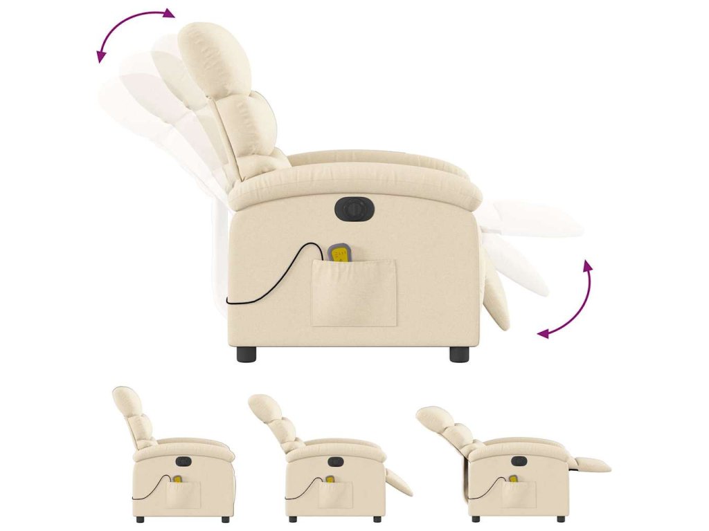 vidaXL Elektrické masážne sklápacie kreslo krémové látka