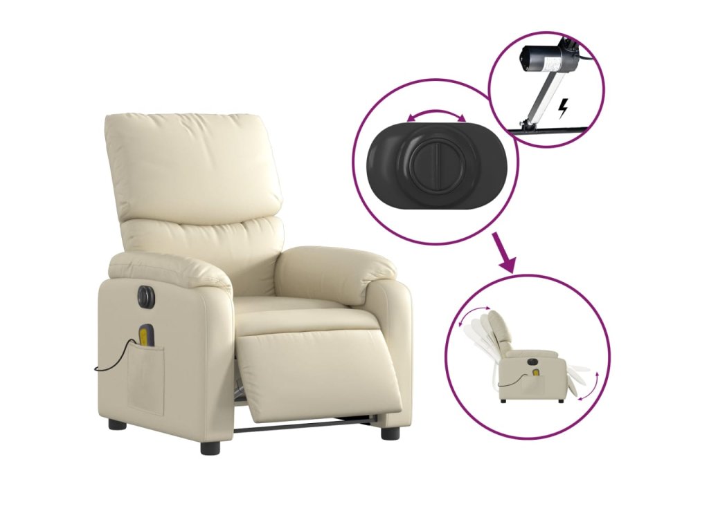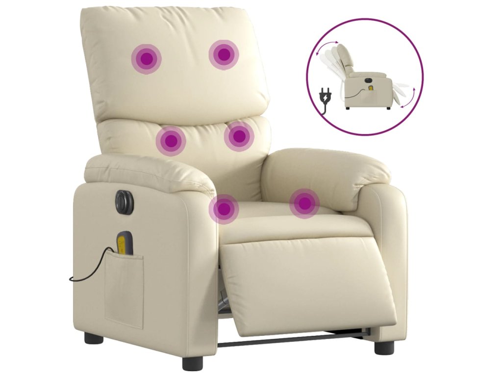 vidaXL Elektrické masážne sklápacie kreslo krémové umelá koža